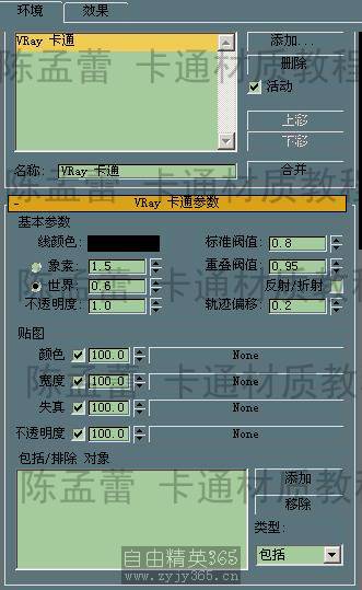 它和max的卡通材质不同的是它的卡通材质不是在材质编辑器里,而是在环境面板里。